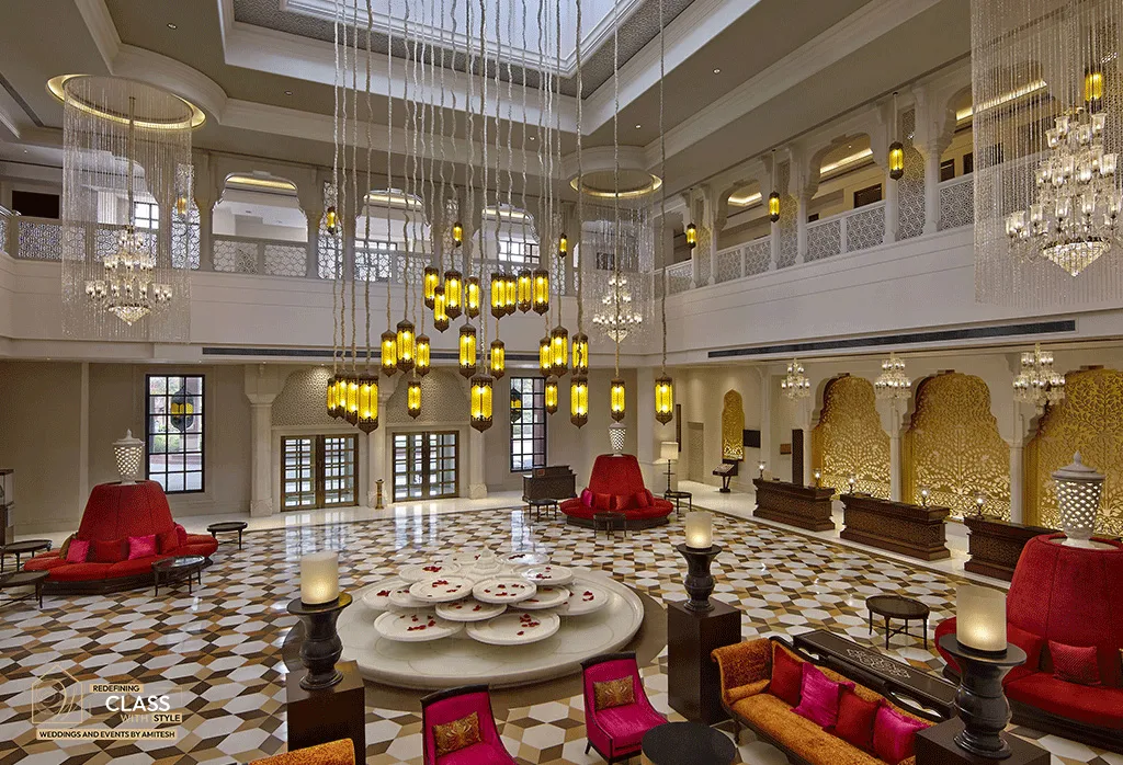 A tribute to Rajasthan’s royal heritage, ITC Rajputana blends traditional architecture with luxury comfort, landscaped courtyards, and elegant banqueting venues. With its central location, heritage-inspired ambiance, and curated guest services, it remains a preferred choice among top wedding venues in Jaipur for intimate yet luxurious celebrations.