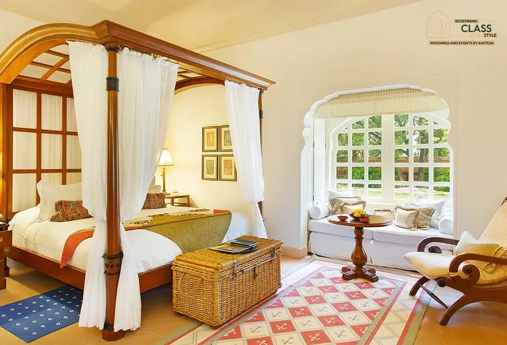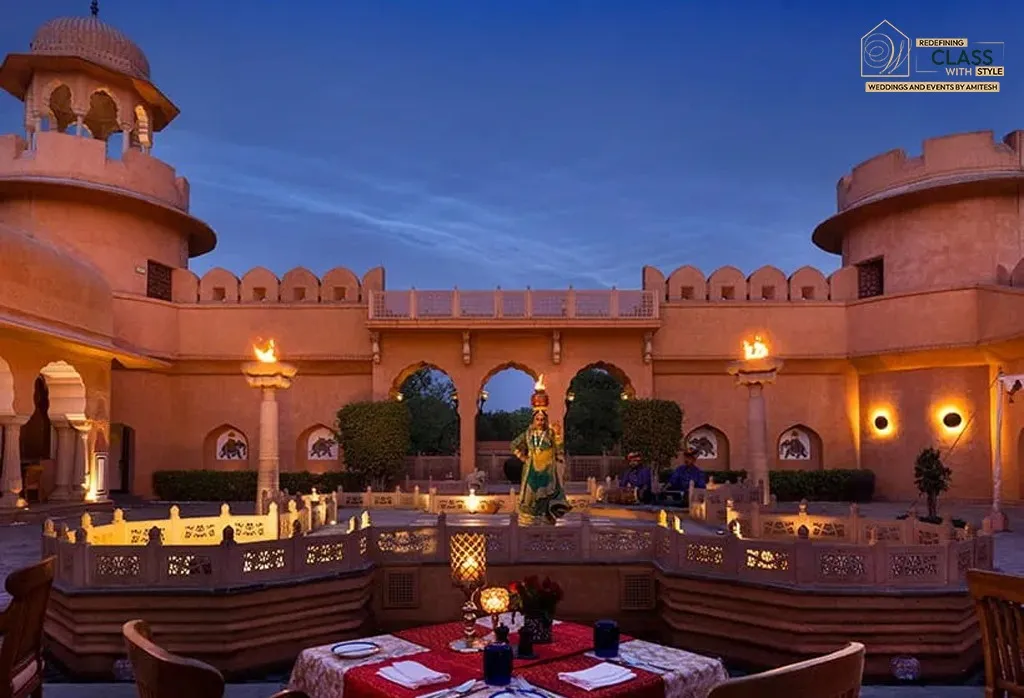 At Weddings and Events by Amitesh, we craft luxurious weddings at the finest heritage venues across Rajasthan. The Oberoi Rajvilas, Jaipur stands out as a majestic resort blending regal Rajasthani architecture with modern comforts. Its tranquil gardens, panoramic views, and royal ambiance make it the perfect canvas for destination weddings rooted in tradition and elegance.