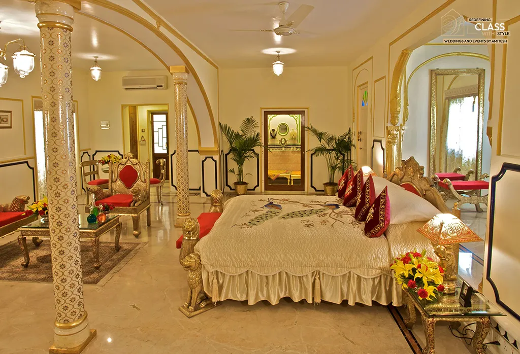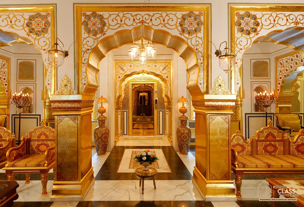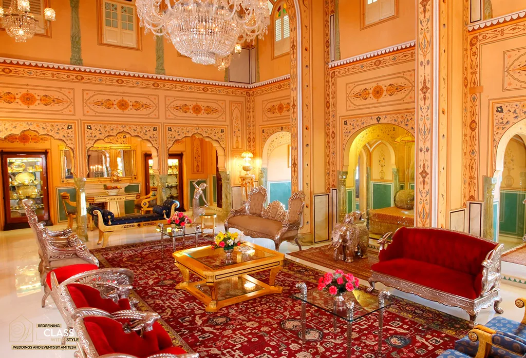 At Weddings and Events by Amitesh, we design timeless palace weddings that echo luxury, heritage, and cultural finesse. The Raj Palace, one of Asia’s finest boutique heritage hotels and a member of Small Luxury Hotels of the World, offers an ultra-regal setting with museum-style suites, gold-leaf interiors, crystal chandeliers, and Mughal-Rajput architecture — perfect for intimate royal weddings.